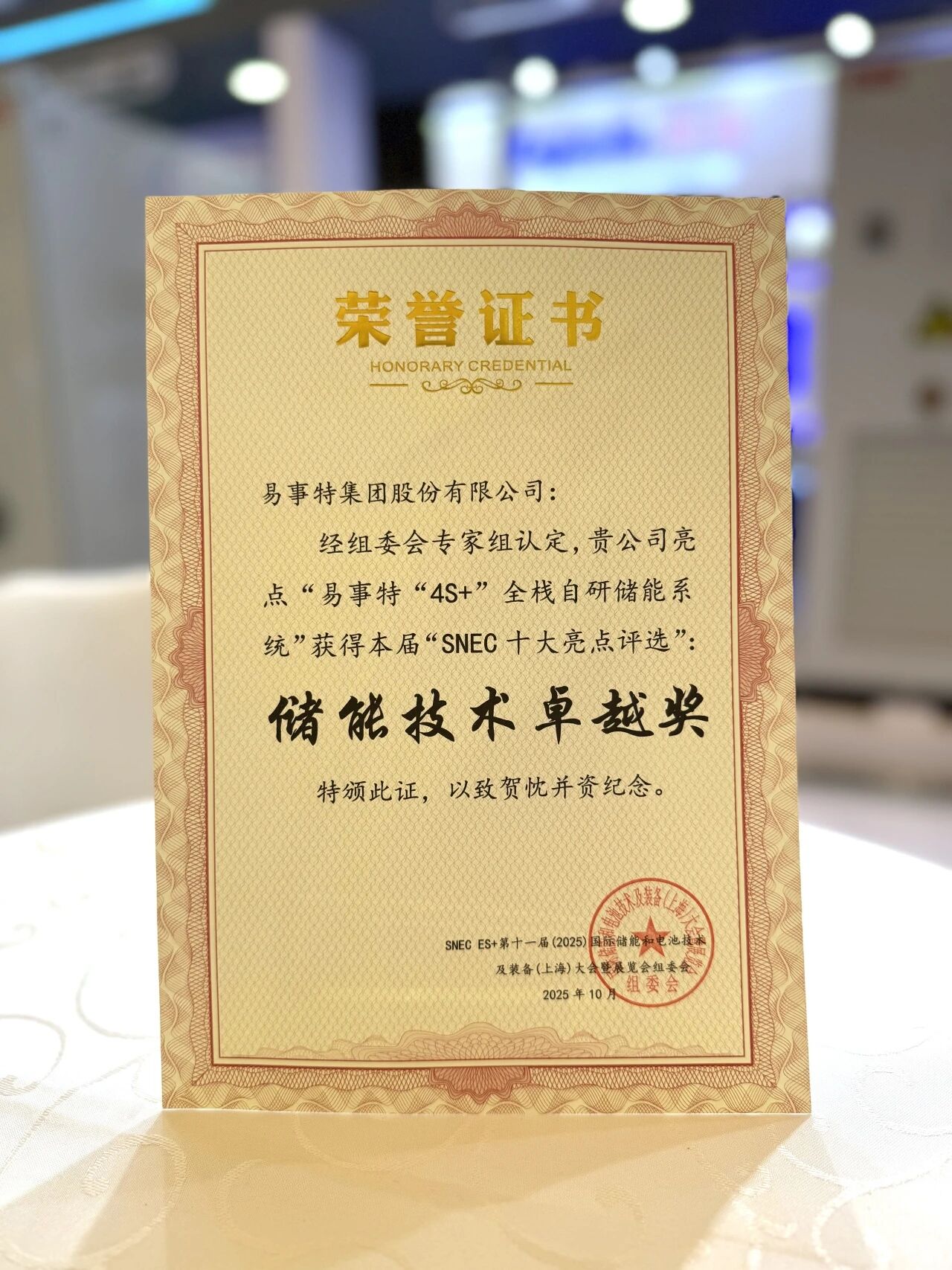 喜訊!易事特榮膺SNEC ES+十大亮點(diǎn) “儲能技術(shù)卓越獎”